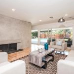 Mid Century-Modern home boasts a spacious and sensible floor plan that includes ample sized bedrooms and four newly remodeled baths, including a Master bedroom suite with two sets of French doors that look out onto an extensive back yard pool patio. A spacious living room with a double fireplace and mood lighting. This beautiful backyard isexcellence for entertaining with it’s spacious patio deck, swimming pool and diving board, set against a back drop of rolling lawns and delicate queen palms. A newly built 7 foot high redwood fence, artistically patterned and thoughtfully designed, offers both beauty and privacy.